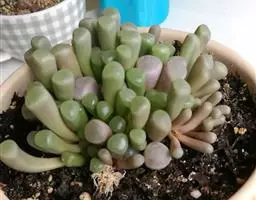 五十铃玉是番杏科窗玉属的多年生肉质植物,别名有“棒叶花”“婴儿脚趾”。植株高5厘米,叶片淡绿色,肉质,…