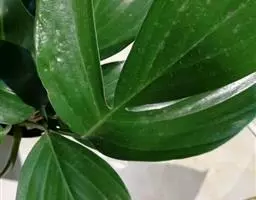 介壳虫危害,在通风不良、光线欠佳的环境中,金钱树的叶片易遭介壳虫的刺吸危害。
