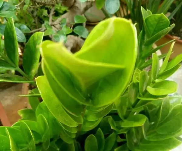 雪铁芋(学名:Zamioculcas zamiifolia Engl.),又名为金钱树。是多年生常绿草本植物,是极为少见的带地下块茎的观叶植物。地上部无主茎,不定芽从块茎萌发形成大型复叶,小叶肉质具短小叶柄,坚挺浓绿;地下部分为肥大的块茎。羽状复叶自块茎顶端抽生,叶轴面壮,小叶在叶轴上呈对生或近对生。佛焰花苞绿色,船形,肉穗花序较短。