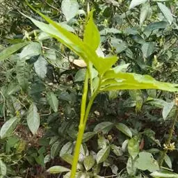 雪铁芋 地上部分无主茎,株高50至80厘米,地下有肥大的块状茎,直径5至8厘米。