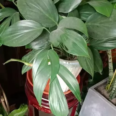 雪铁芋植株的每一枚偶数羽状复叶都呈叶轴基部硕壮的状态,仿佛是挺起的佛肚。叶轴的中上部则呈圆柱形,上有不规则的暗褐色斑纹,宛若外被一层迷彩衣。其复叶上的椭圆形或卵圆形小叶,质地厚实,叶色浓绿,在阳光下仿佛涂上一层闪闪发光的釉彩。如果将数株合栽于一个精致的青花瓷盆中,则有一种蓬勃向上的生机、葱翠欲滴的活力,观赏价值高。