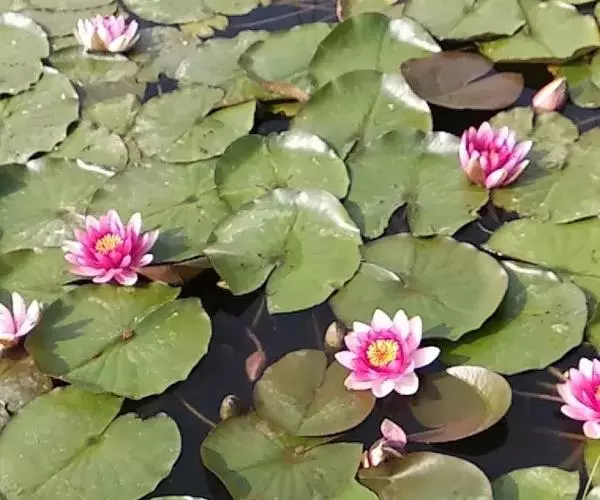 在中国荷文化史上,盆荷这种形式出现之初只是被用于私家庭院观赏。盆栽和池栽相结合的布置手法,提高了盆荷的观赏价值,在园林水景和园林小品中经常出现。睡莲水石盆景是一种新的盆景。它是睡莲盆栽与水石盆景的有机结合,既体现山石的刚毅挺拔,又显示矑的娇艳妩媚。