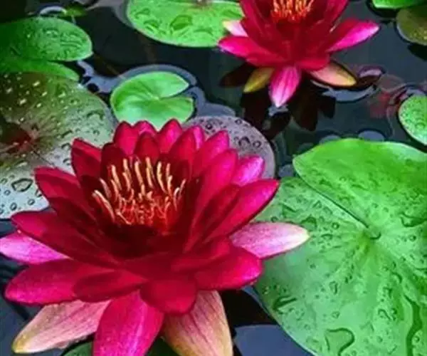 红睡莲是睡莲科睡莲属的多年生水生花卉植物。叶圆形或近圆形,沉水叶薄膜质,幼叶紫红色,…