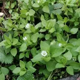 繁缕,别名:鹅肠菜、鹅耳伸筋、鸡儿肠,拉丁文名:Stellaria media (L.) Cyr. 石竹科、繁缕属一年生或二年生草本,高10-30厘米。茎俯仰或上升,基部多少分枝,常带淡紫红色,被1 (-2) 列毛。叶片宽卵形或卵形,顶端渐尖或急尖,基部渐狭或近心形,全缘;基生叶具长柄,上部叶常无柄或具短柄。疏聚伞花序顶生;花梗细弱,蒴果卵形,稍长于宿存萼,顶端6裂,具多数种子;种子卵圆形至近圆形,稍扁,红褐色,直径1-1.2毫米,表面具半球形瘤状凸起,脊较显著。花期6-7月,果期7-8月。