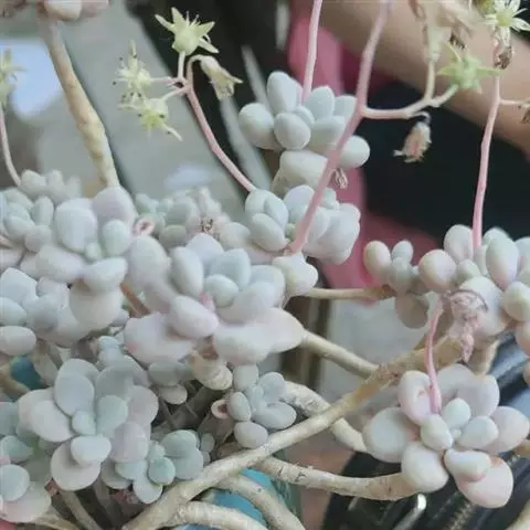 蓝豆是景天科、风车草属的多年生植物,多肉植物。植株叶片覆白粉,呈淡蓝色,…