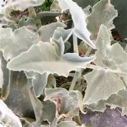 植株叶片对生,长梭型,整个叶片及茎干密布白色绒毛。叶片顶端微金黄,叶尖圆型。初夏开花,聚伞花序,花序较高,小花管状向上,花开白粉色,花瓣4片,花期较长。