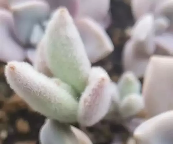 福兔耳为景天科伽蓝菜属多肉植物,植株叶片对生,长梭型,整个叶片及茎干密布白色绒毛,叶片顶端微金黄,叶尖圆型,初夏开花,聚伞花序,花序较高,小花管状向上,花开白粉色,花期较长!