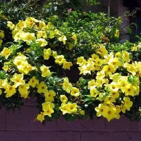 黄蝉植株浓密,叶色碧绿,花朵明快灿烂,非常醒目,适宜作大中型盆栽,装饰客厅、阳台、公园及商场、会场等大型室内空间,效果很好。