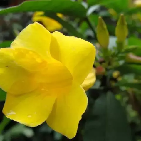 黄蝉原产美国南部及巴西,喜温暖湿润和阳光充足的环境,不耐寒。5月至8月的生长旺盛期,每10天左右施一次腐熟的稀薄液肥或复合肥,注意肥料中氮肥含量不宜过多,以免枝叶生长过旺而开花稀少。此外,栽培环境光线不足,也会造成这种现象,因此要尽量给予充足的阳光。