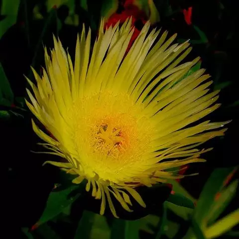 头状花序单生于枝端,径2.5-3.5厘米。总苞半球形,径1-1.3厘米,长5-7毫米;总苞片近等长,外层叶质或上部叶质,线状披针形,有腺点,被柔毛;内层线状披针形,无毛,边缘宽膜质,有缘毛。舌状花较总苞长3倍,舌片黄色,线形,长约15毫米,顶端有3齿;管状花花冠长约3毫米,有披针形裂片,裂片有腺点;冠毛白色,约与花冠管部同长,有5个或稍多的微糙毛。瘦果近圆柱形,顶端截形,有10条深陷的纵沟,无毛。