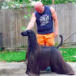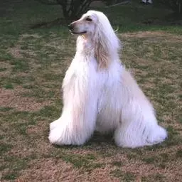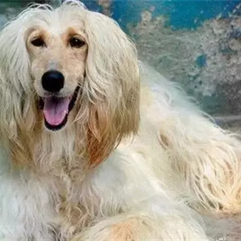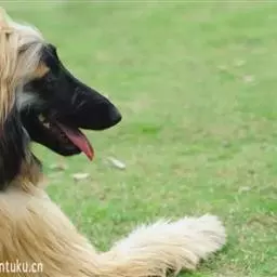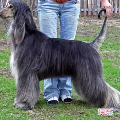 阿富汗猎犬全身披丝绢状的长毛,毛色鲜艳,呈多种颜色,背中线附近毛短,…