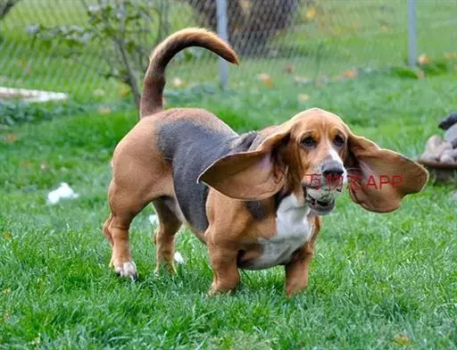 巴吉度犬 皮松弛而有弹性。明显的长毛是不符合标准的。