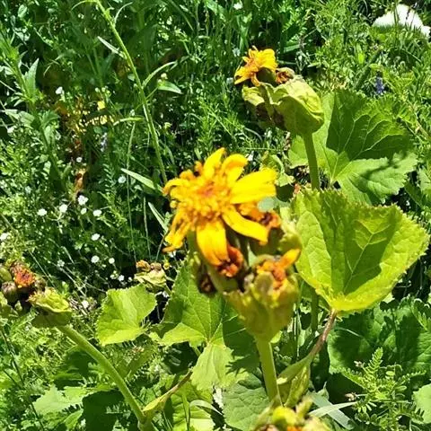堆心菊 多年生草本植物。 茎直立或基部稍弯曲,高50-100厘米,茎头纵棱,具有稀舒长柔毛。