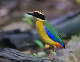 仙八色鸫是雀形目八色鸫科八色鸫属鸟类。雄鸟前额至枕部深栗色,有黑色中央冠纹,眉纹淡黄,…