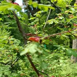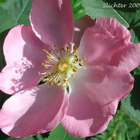刺蔷薇(学名:Rosa acicularis Lindl.):灌木,高1-3米;小枝圆柱形,稍微弯曲,红褐色或紫褐色,无毛,有细直皮刺。小叶片宽椭圆形或长圆形。花单生或2-3朵集生,苞片卵形至卵状披针形,先端渐尖或尾尖,边缘有腺齿或缺刻,花梗无毛,密被腺毛;萼筒长椭圆形,光滑无毛或有腺毛;萼片披针形,花瓣粉红色,芳香,倒卵形,先端微凹,基部宽楔形;花柱果梨形、长椭圆形或倒卵球形,红色,有光泽。花期6-7月,果期7-9月。