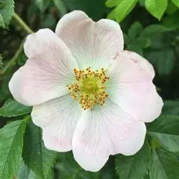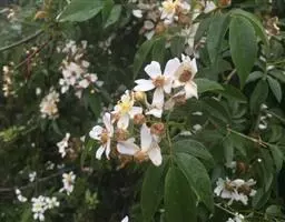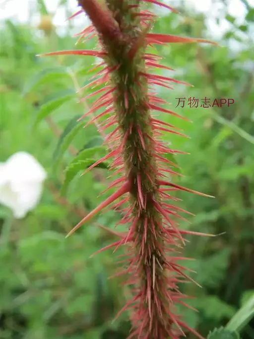 白蔷薇:直立灌木,高约2米;小枝有不等钩状皮刺,有时混有刺毛。小叶通常5,稀7,宽椭圆形或卵形,…