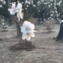 4.花期气候条件恶劣,主要是春季晚霜、大风及沙尘天气。巴旦木开花较早,花期集中在3月下旬至4月上旬,此时正值晚霜、大风及沙尘天气频繁发生,低温易造成花芽及花期冻害,持续的沙尘天气大大降低花粉散粉率,严重影响授粉受精。