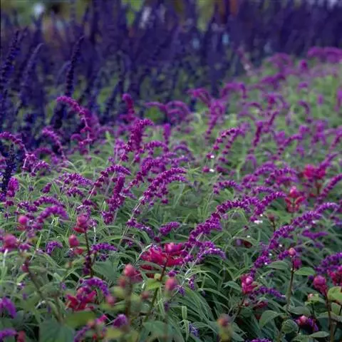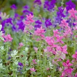 彩苞鼠尾草为唇形科、鼠尾草属一年生草本,株型直立,叶对生长椭圆形,色灰绿,叶表有凹凸状织纹,有香味,…