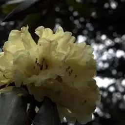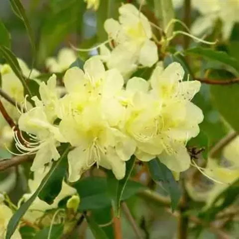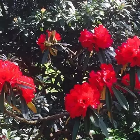 黄杯杜鹃:灌木,高约3米;幼枝嫩绿色,平滑无毛,老枝灰白色,树皮有时层状剥落。叶多密生于枝端,革质…