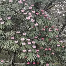东晋孙绰在《游天台山赋》中赞美天台山“八桂森挺以凌霜,五芝含秀而晨敷……建木灭景於千寻,琪树璀璨而垂珠”,良好的生态环境和人为积极保护,使天台山许多的古木名花繁衍至今,华顶国家森林公园境内的云锦杜鹃就是其中树姿优美、花色娇艳的名花。 云锦杜鹃梵语称娑罗,清代邑人齐周华在《台岳天台山游记》中写他游华顶时记叙:“山高气寒,四时之花信常迟,帷娑罗种性最宜,故四月花开如木笔,如芍药,香满禅林。然帷此与石梁有之,洵异种也。”