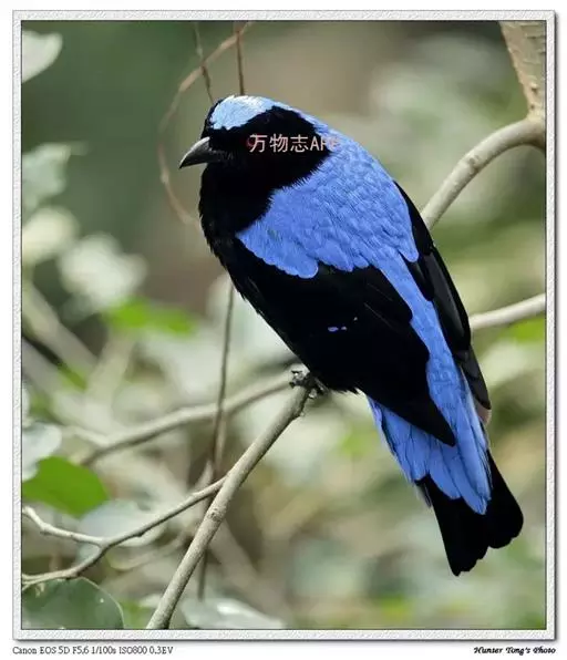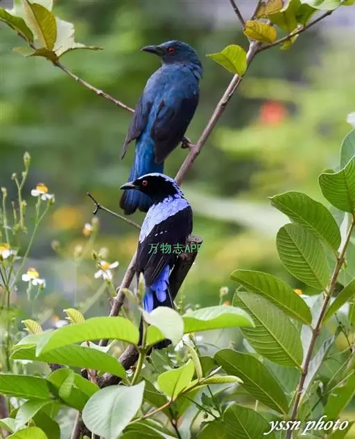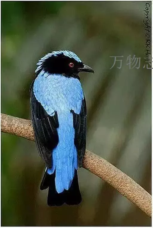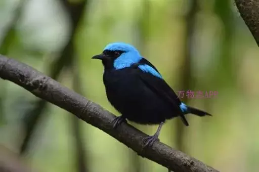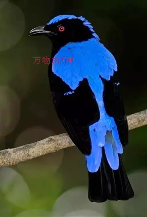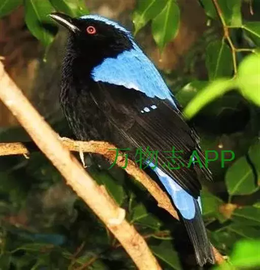 和平鸟(学名:Irena puella)中型鸟类,体长24~28厘米。眼红色,嘴、脚黑色。雄鸟从头顶到尾上覆羽等整个上体辉蓝色具紫色光泽,其余体羽黑色。雌鸟通体铜蓝色,仅飞羽黑褐色。