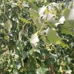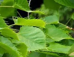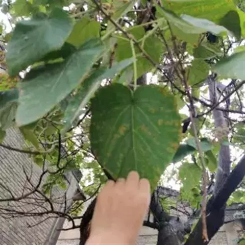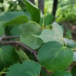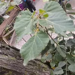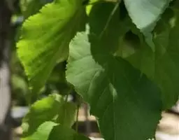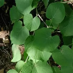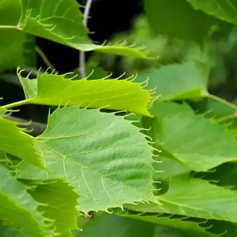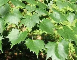 乔木,高10米,树皮淡灰色,有不规则薄片状脱落;嫩枝无毛,顶芽卵形,无毛。叶阔卵形或圆形,长4-6厘米,宽3.5-5.5厘米,先端渐尖,常出现3裂,基部微心形或斜截形,上面无毛,下面仅脉腋内有毛丛,侧脉4-5对,边缘有粗锯齿,齿尖突出;叶柄长2-3.5厘米,无毛,纤细。