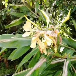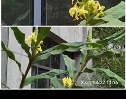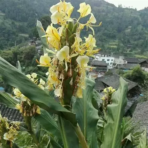 滇姜花(学名:Hedychium yunnanense Gagnep.)是姜科、姜花属陆生或附生草本植物,茎粗壮。叶片卵状长圆形至长圆形,两面均无毛,顶端具尾状尖头,基部渐狭成槽状的短柄;叶舌长圆形,穗状花序,苞片披针形,花萼管状,顶端不明显的齿,有缘毛;花冠管纤细,裂片线形,侧生退化雄蕊长圆状线形,基部收窄,较花冠裂片稍短,唇瓣倒卵形,柱头具缘毛;子房被疏柔毛。蒴果具钝三棱,种子多数,红色、9月开花。