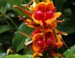 蒴果具钝三棱,直径12-14厘米,无毛;种子多数,具红色、撕裂状假种皮。花期:9月。