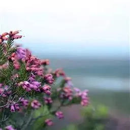 它是一种不怕冷的寒带小灌木,杜鹃花科。为了适应环境,它的叶子都演变得又细又小,花朵也是出奇的袖珍,每一朵花都是铃形,直径还不到半公分,玲珑无比。 冰天雪地的北欧,叶落花残,小小的欧石楠,挺着娇小身躯,在冰封的荒原倔强地生长,漫山遍野,从不凋萎,在万物枯槁的极地冰原,为驯鹿们带来冽冽严冬里温馨的食粮。勇敢,无私,白色、桃色、紫色的小花盛放在雪地里,为皑皑冰原装点春色。