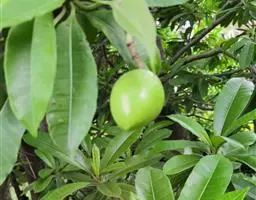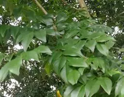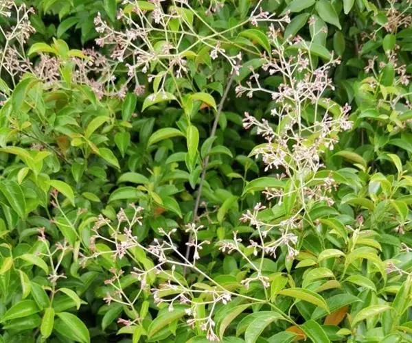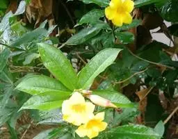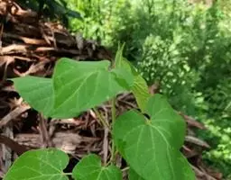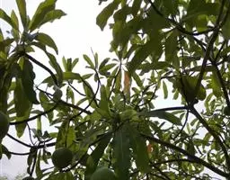 酸叶胶藤 高攀木质大藤本,长达10米,具乳汁;茎皮深褐色,无明显皮孔,枝条上部淡绿色,下部灰褐色。叶纸质,阔椭圆形,长3-7厘米,宽1-4厘米,顶端急尖,基部楔形,两面无毛,叶背被白粉;侧脉每边4-6条,疏距。