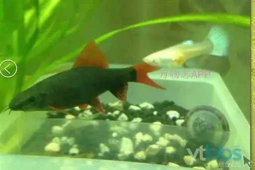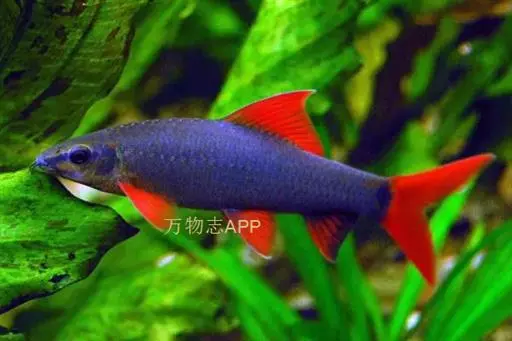 彩虹鲨 彩虹鲨,来自泰国的彩虹鲨在热带鱼中算是中型偏大的品种,它体长可达 14 厘米,身体呈纺锤形,尾鳍叉形,全身为黑墨色,尾鳍呈金红色。红与黑置于一体,色彩分明,别具一格。彩虹鲨的另一标志是背鳍特别宽大,嘴上有二根胡须。 体延长而侧扁。腹部轮廓较为平坦。口前位,吻端具短须。背鳍高且呈三角形,位于鱼体之中后方,整体看来类似鲨鱼之体型。体色一致为黑色,雄鱼体色较深。各鳍均呈深黑色,唯尾鳍为鲜橘红色,胸鳍则淡色,或微橘黄色。最大体长可达12公分。体高似梭形,长5~6厘米。