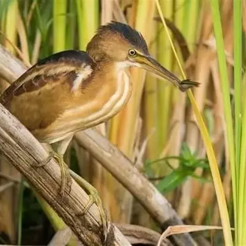 黄苇鳽是鹈形目鹭科苇鳽属鸟类。成鸟顶冠黑色;上体淡黄褐色,下体黄色,…