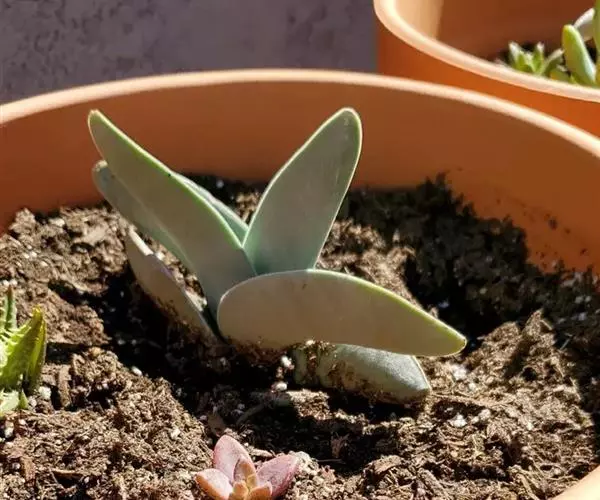叶插:神刀还可以用叶插繁殖。选择挺拔充实的叶片,采下后置凉处阴干伤口,然后将叶平展于基质上,保持插壤湿润,可在叶基部荫出小株。或将叶片切成5-6厘米长的叶段,待伤口干燥后,平放在湿润的基质上,约20-30天可从愈合处生根,并长出小株。