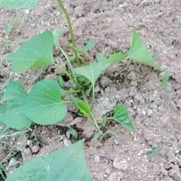 番薯 Lam.),多年生草质藤本植物,具有乳汁;其块根为白、红或黄色;茎生不定根;叶呈宽卵形或卵状心形,叶色有浓绿、黄绿、紫绿等,前端渐尖,基部呈心形或近平截;花冠为粉红、白、淡紫或紫色,呈钟状或漏斗状,无毛;蒴果呈卵形或扁圆形;由于番薯是于异花授粉,自花授粉常不结实,所以有时只见开花不见结果。 种子1-4粒,通常2粒,无毛。番薯原产于南美洲及大、小安的列斯群岛,现已广泛栽培在全世界的热带、亚热带地区,但在一些较北的地区如黑龙江省也已栽种成功,中国大多数地区都普遍栽培。番薯适应性强,喜温暖多光而不耐霜冻,抗旱耐碱,适种于肥沃而排水良好的砂质壤土,是一种易于保收的作物。番薯是一种高产而适应性强的粮食作物,在中国南方,有“一造番薯半年粮”的说法, 与工农业生产和人民生活关系密切;块根除作主粮外,也是食品加工、淀粉和酒精制造工业的重要原料;根、茎、叶可作