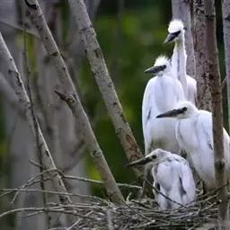 雪鹭:全身洁白的羽毛,颈背有丝状蓑羽。有一双亭亭玉立黄色长腿和一个黑色的鸟喙。在繁殖季节,鼻孔和眼…