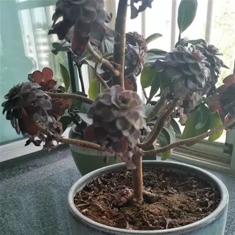 黑法师缀化,景天科莲花掌属多肉植物。