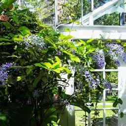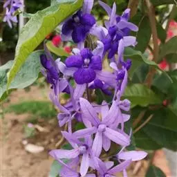 蓝花藤是马鞭草科、蓝花藤属木质藤本,长达5米,叶对生,革质,触之粗糙,椭圆状长圆形或卵状椭圆形,…