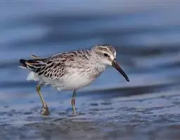 红脚鹬:体长28厘米,上体褐灰,下体白色,胸具褐色纵纹。飞行时腰部白色明显,次级飞羽具明显白色外缘。…