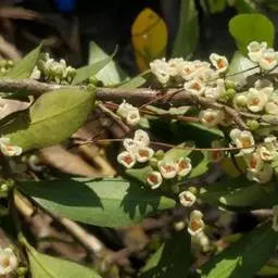 米碎花(学名:Eurya chinensis R. Br.),山茶科灌木,高1-3米;嫩枝具2棱,黄绿色或黄褐色,小枝稍具2棱,灰褐色或浅褐色。叶薄革质,倒卵形或倒卵状椭圆形。花1-4朵簇生于叶腋,萼片5,卵圆形或卵形;花瓣5,白色,倒卵形。果实圆球形,有时为卵圆形,成熟时紫黑色;种子肾形,稍扁,黑褐色。花期11-12月,果期次年6-7月。广泛分布于中国南部等地区。多生于海拔800米以下的低山丘陵、山坡、灌丛路边或溪河沟谷灌丛中。该种根及全株可入药。
