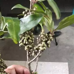果实圆球形,有时为卵圆形,成熟时紫黑色,直径3-4毫米;种子肾形,稍扁,黑褐色,有光泽,表面具细蜂窝状网纹。花期11-12月,果期次年6-7月。 [1-2]