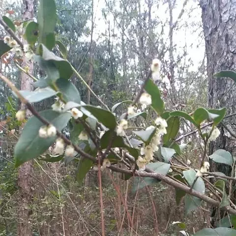 花1-4朵簇生于叶腋,花梗长约2毫米,无毛。雄花:小苞片2,细小,无毛;萼片5,卵圆形或卵形,长1.5-2毫米,顶端近圆形,无毛;花瓣5,白色,倒卵形,长3-3.5毫米,无毛;雄蕊约15枚,花药不具分格,退化子房无毛。雌花的小苞片和萼片与雄花同,但较小;花瓣5,卵形,长2一2.5毫米,子房卵圆形,无毛,花柱长1.5-2毫米,顶端3裂。