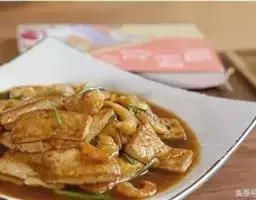 山珍豆腐是一道川菜,主料有豆腐,调料有大葱、姜、植物油、酱油、料酒。