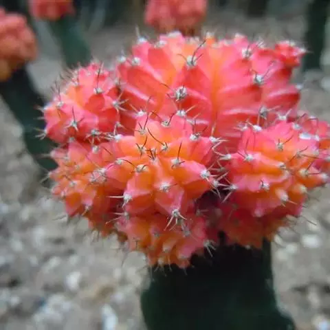 子孙球是仙人掌科植物中生性极为强健的观赏球。株体鲜绿色,花蕾呈现鲜红色,最美好的形态是它欲放未放的身影,晶莹剔透,置于阳台、窗台莳养,是装饰几案、书桌的佳品。