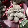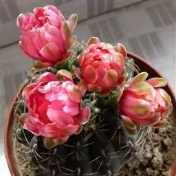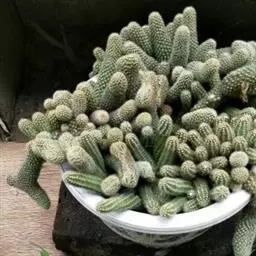 子孙球最宜盆栽。要经常转动花盆,调节其长势。子孙球盆栽,宜在4月中下旬进行。栽培前,要选大小适宜的土陶花盆。基质可用粗河砂3份、砂质园田土2份、森林腐叶土2份、堆积的腐殖土5份、老墙石灰土1.5份配制,配合时再加少量的过磷酸钙、骨粉、蛋壳粉,充分混合,曝晒数日,进行高温和紫外线消毒,便可上盆使用。操作时,盆底要用碎盆片覆盖,木炭块作排水层,上面再填培养土。栽培时,挑选生长健壮的种球,带土团撬起。基质要刮平落实,用竹筷打孔,将种球端正地栽培在花盆中央,周围壅土扎紧,使之不偏不歪,稳定在盆土表面,浇一次定根水。同时,浇水后还要检査,种球是否偏离,如出现歪倒,还要扶正加土紧扎,使之稳固。最后把花盆置于半荫蔽处,缓苗5-7天,待其恢复生机后,便可进行正常管理。