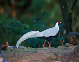 红腹角雉栖息于海拔1000-3500m的山地森林、灌丛、竹林等不同植被类型中,其中尤以1500-2500m的常绿 红腹角雉 阔叶林和针阔叶混交林最为喜欢,有时也上到海拔3500m左右的高山灌丛,甚至裸岩地带活动。