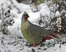 它喜欢单独活动,只是在冬季偶尔结有小群。主要以乔木、灌木、竹、草本植物和蕨类的嫩芽、嫩叶、青叶、花、果实和种子等为食,兼食少量动物性食物,食物种类非常广泛,已经记录到的就有40多种。春季和夏 红腹角雉 季喜食鳞毛蕨、宝兴冷蕨、报春花等的嫩叶和嫩芽等;秋季除蕨类外,还有玉竹、花楸、悬钩子等的叶、茎和果实,以及山蜗牛、昆虫等动物性食物;冬季则以常扒开雪被,啄食早熟禾、铁线莲、鹿耳韭等草本植物和蕨类的叶。