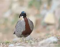 它的胆子很小,走过林间小路时,常常先从灌丛边伸头张望,确认没有危险时才迅速通过。每当夜幕降临时,它们就悄悄地飞到树上过夜,雄鸟和雌鸟在相距不远的树上分别栖息。
