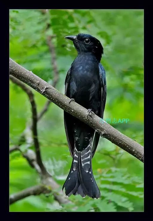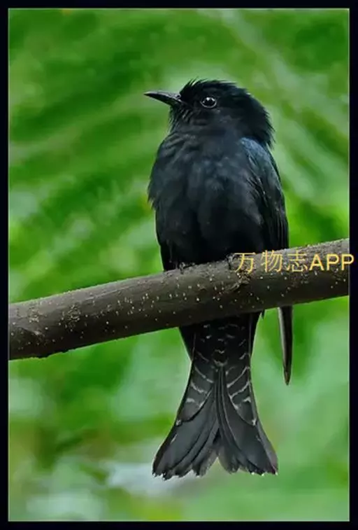 乌鹃(学名:Surniculus lugubris):是杜鹃科、乌鹃属的小型鸟类,体长23-28厘米,通体黑色,尾呈浅叉状,尾下覆羽和外侧尾羽具白色横斑,在黑色的尾部极为醒目。下体黑色,微带蓝色或辉绿色。虹膜褐色或绯红色,嘴黑色,脚灰蓝色。