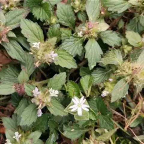 这一变种与原变种不同在于叶宽卵形或近菱形,长4-6厘米,宽3-7厘米,基部下延;花冠长1.5-2(-3)厘米;植株具短茎,高3-6(-12)厘米,通常有叶2对,稀为3对。