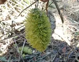 伞形聚伞花序腋生;花序梗长达1厘米,小苞片众多;花萼5深裂,内面基部腺体不多;花冠紫红色,辐状,内面具长柔毛;副花冠裂片盾状,隆肿,比花药为短;花粉块每室1个,长圆形,下垂;柱头微凸,包在花药的薄膜内。蓇葖单生,长披针形,长达9厘米,直径6毫米。花期5-8月,果期9-10月。